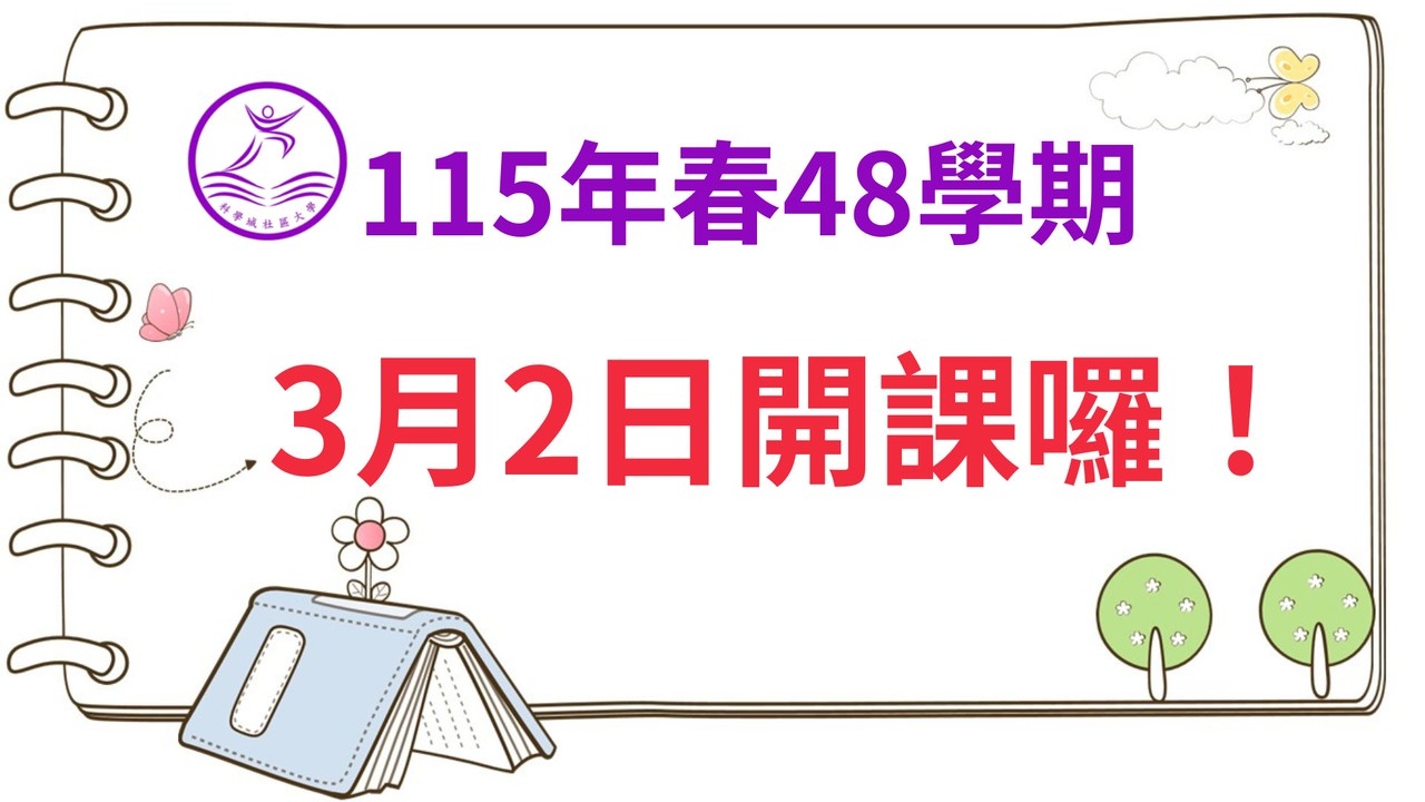 115年度春季第48學期將於3月2日(一)正式開課,當日辦公室恢復正常服務時間(10:00-21:00)。