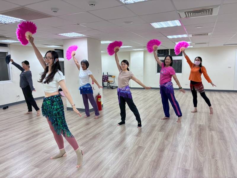 | 1.Leg shimmy & Hip shimmy之練習 2.複合式基本功練習搭配舞碼 | 1.動態暖身 2.上肢肌力訓練及基本功之練習 3.舞碼示範與分組練習 4.瑜伽伸展放鬆 |